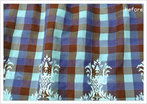 そのままでは生地が硬すぎるので、洗って柔らかくしたいとの御依頼でした。どれくらいの柔らかさが理想かをよく打ち合わせさせて頂き、理想に近い状態にもっていけるよう頑張りました。 |